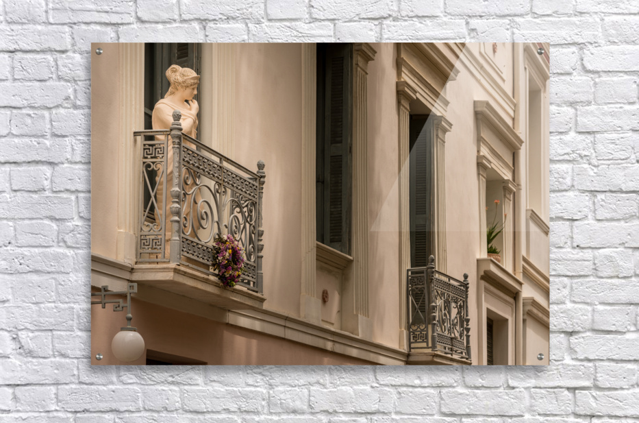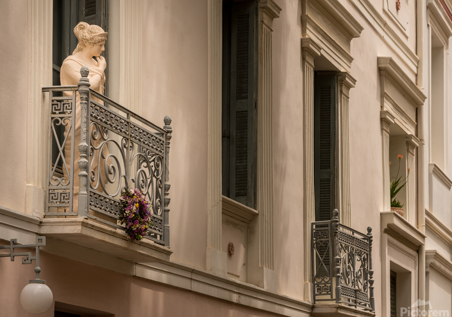 Get this artwork "Statue on balcony in Plaka in Athens" in a framed print.