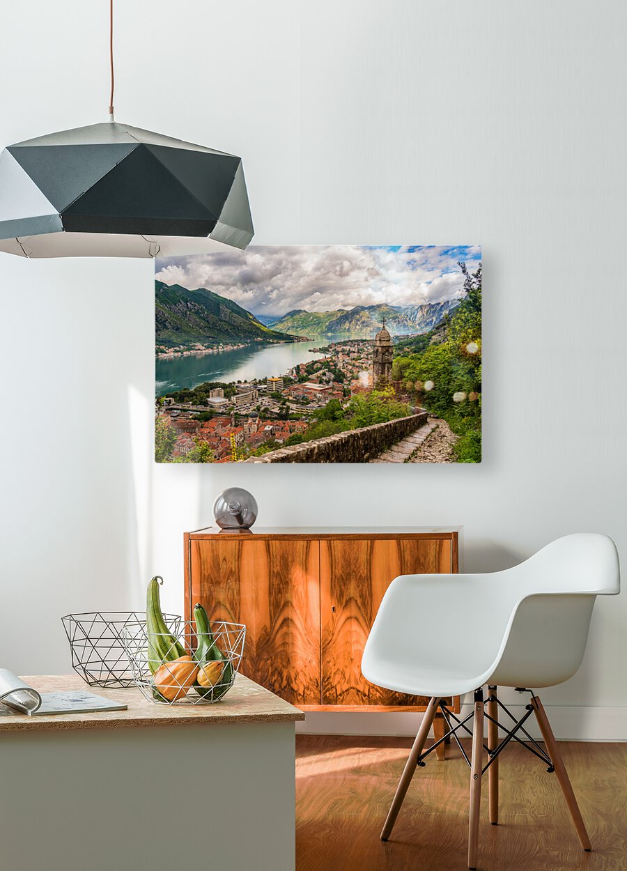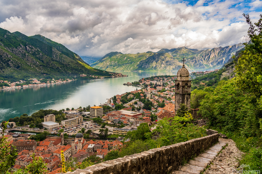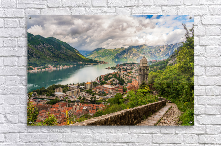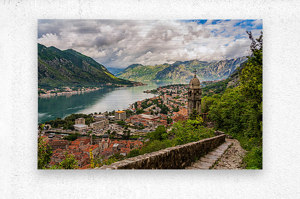 Get this artwork "Steep path by church above Old town of Kotor" in a framed print.