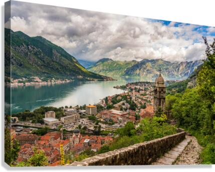 Steep path by church above Old town of Kotor Canvas print