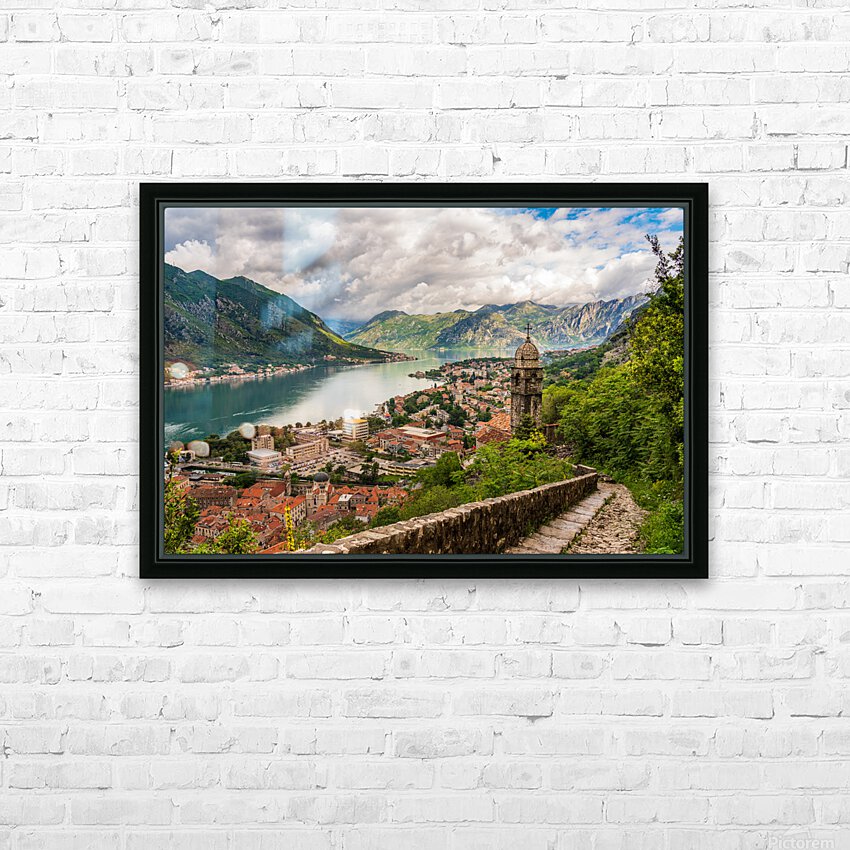 Steep path by church above Old town of Kotor Picture Frame Printing
