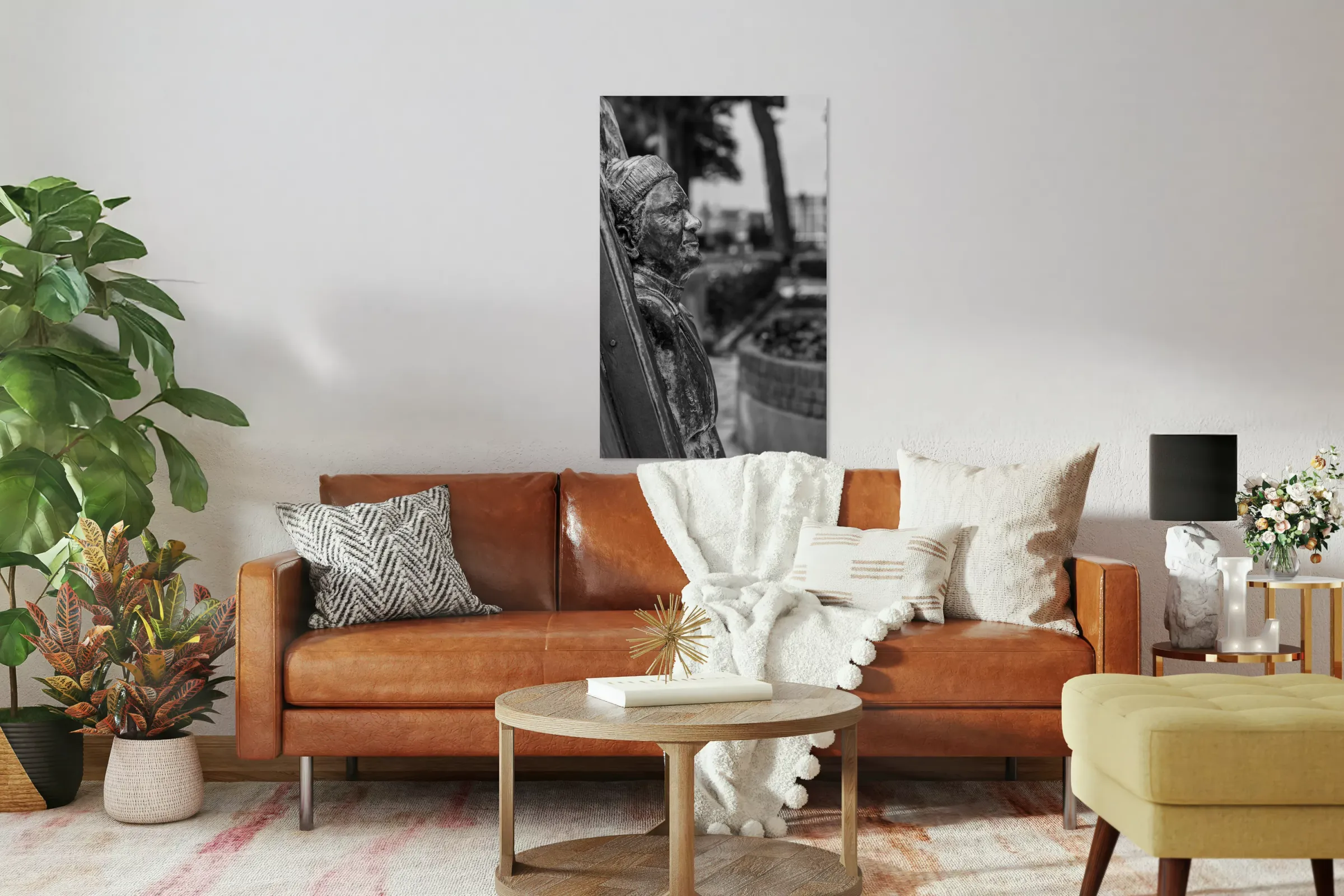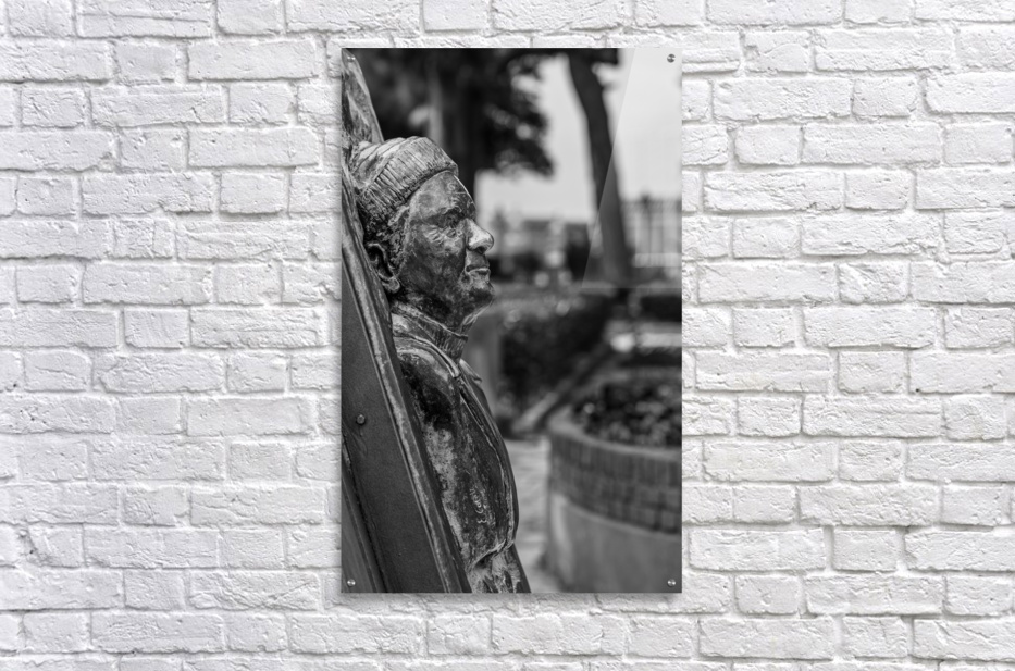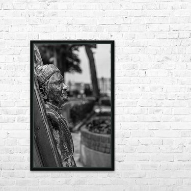 Statue of Lawrence Durrell in Corfu in black and white Picture Frame Printing