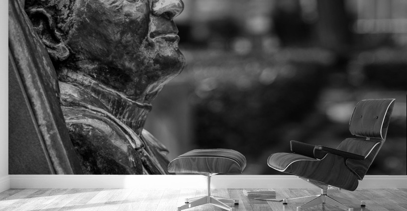 ABOUT THIS ARTWORK: STATUE OF LAWRENCE DURRELL IN CORFU IN BLACK AND WHITE