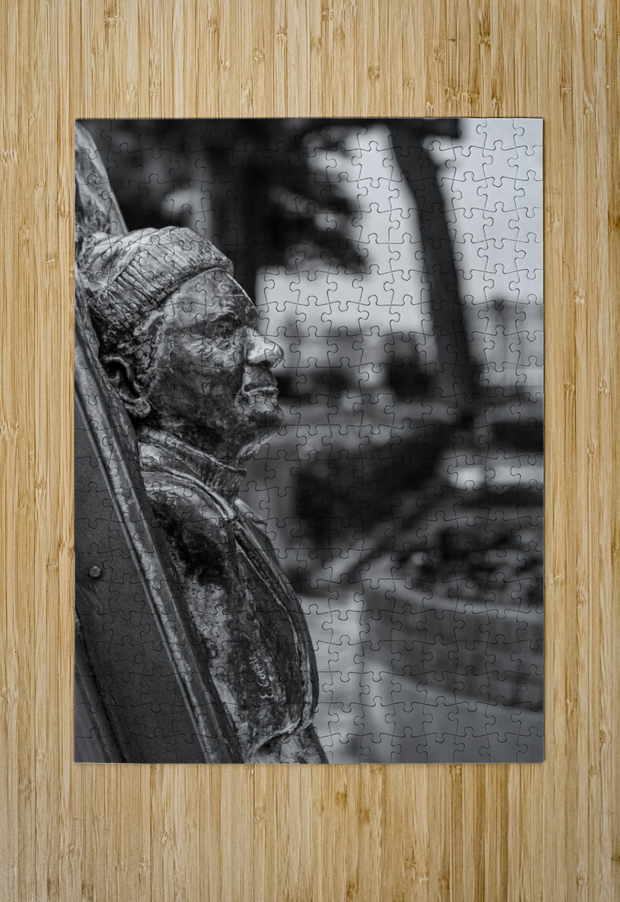 Statue of Lawrence Durrell in Corfu in black and white Steve Heap Puzzle printing