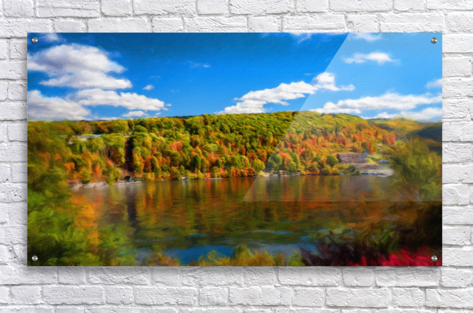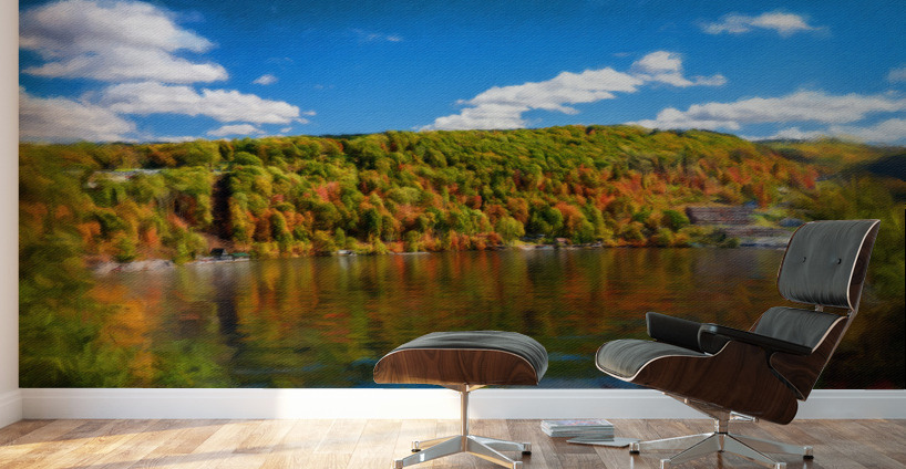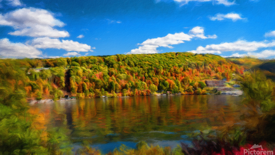 Digital oil painting of a panorama of the autumn fall colors surrounding Cheat Lake near Morgantown West Virginia