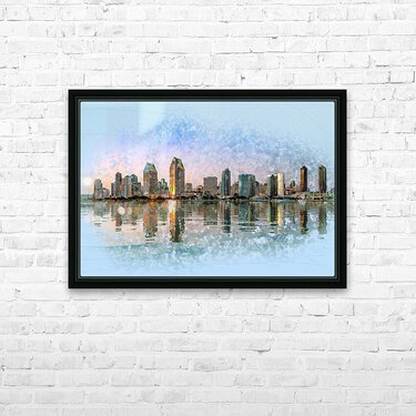 Sketch of San Diego Skyline at sunset  Frame print