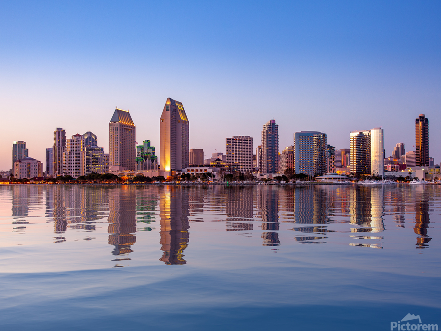 Get this artwork "San Diego Skyline at sunset from Coronado" in a framed print.