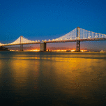 SAN FRANCISCO BAY BRIDGE ILLUMINATED AT NIGHT