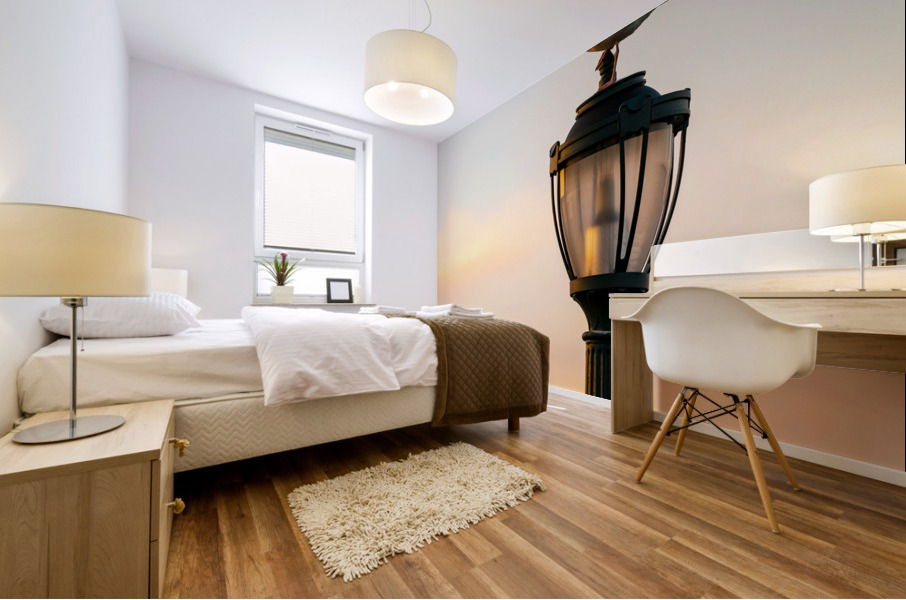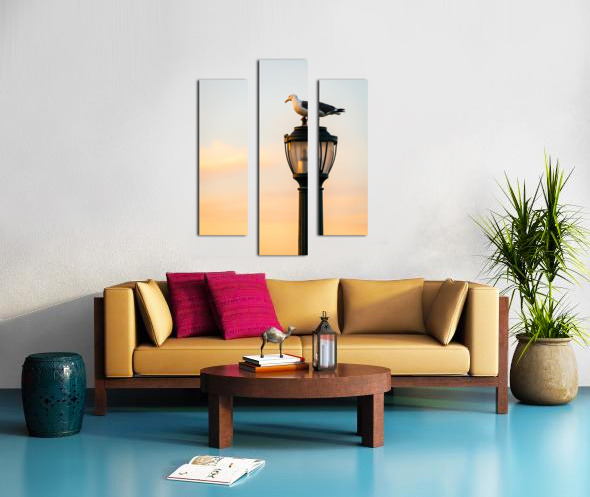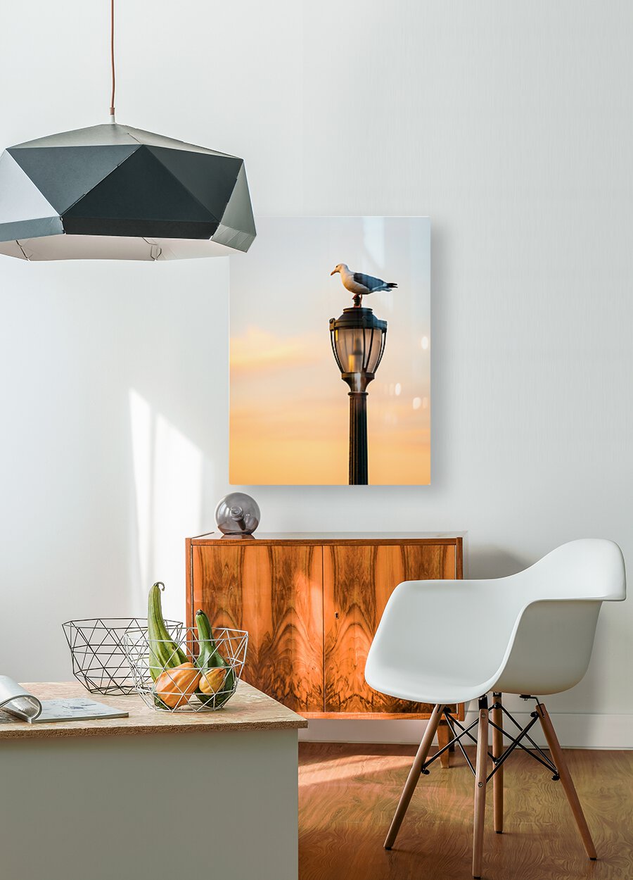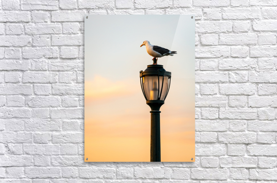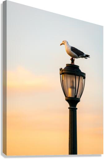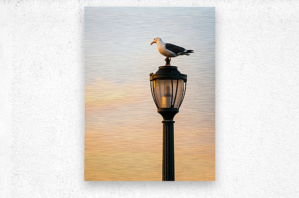 ABOUT THIS ARTWORK: SEAGULL ON A CAST IRON STREET LAMP AT DUSK
