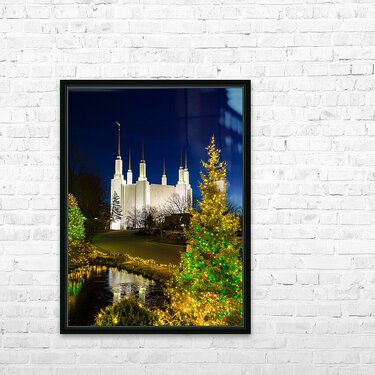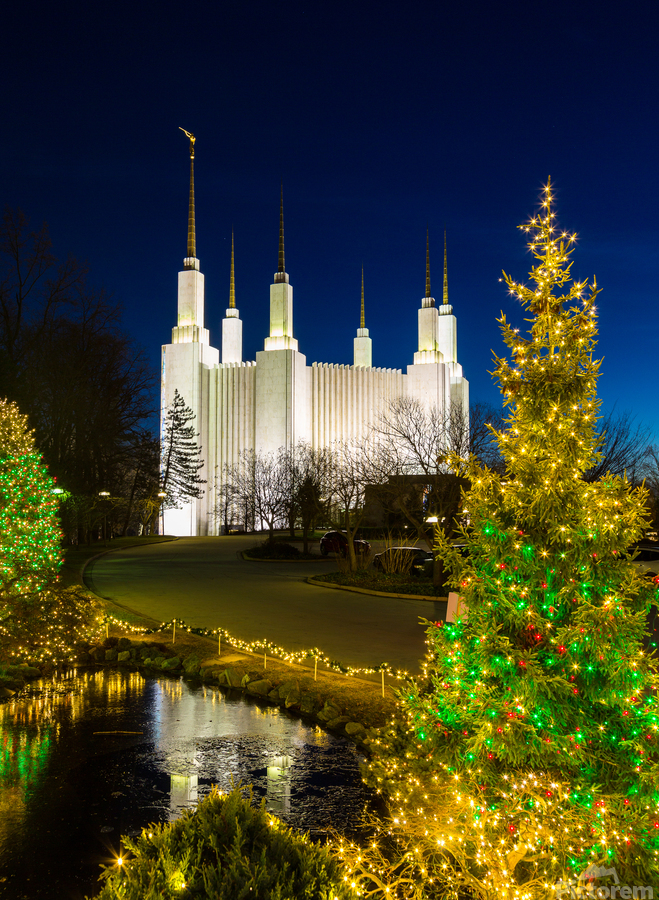 Get this artwork "Mormon temple in Washington DC with xmas lights" in a framed print.