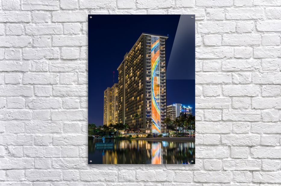 Newly restored tiling mural by Millard Sheets on Rainbow Tower at Hilton Hawaiian Village Hotel in Waikiki Oahu Hawaii