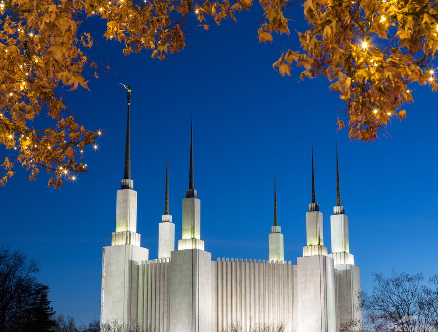 Get this artwork "Mormon temple in Washington DC with xmas lights" in a framed print.