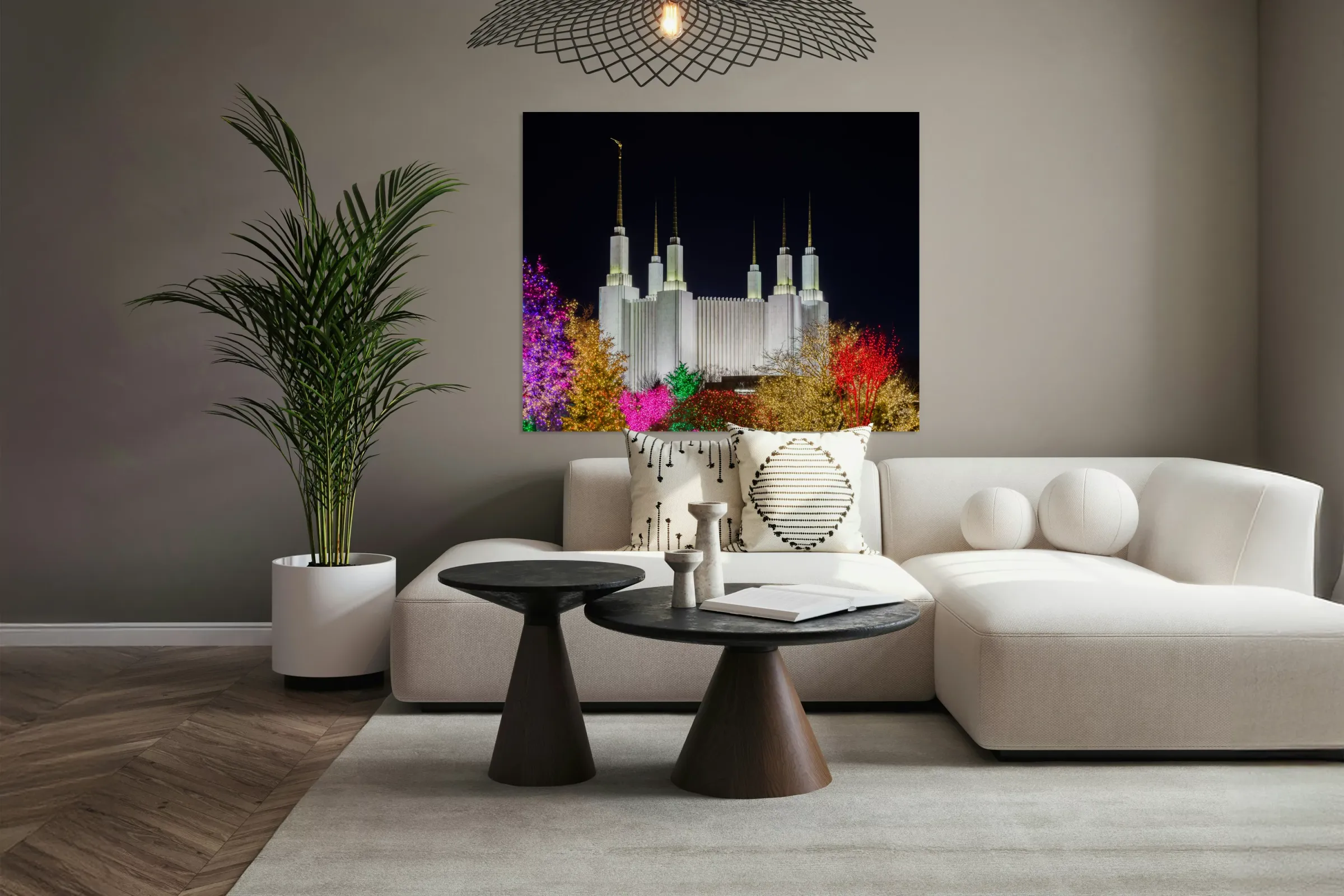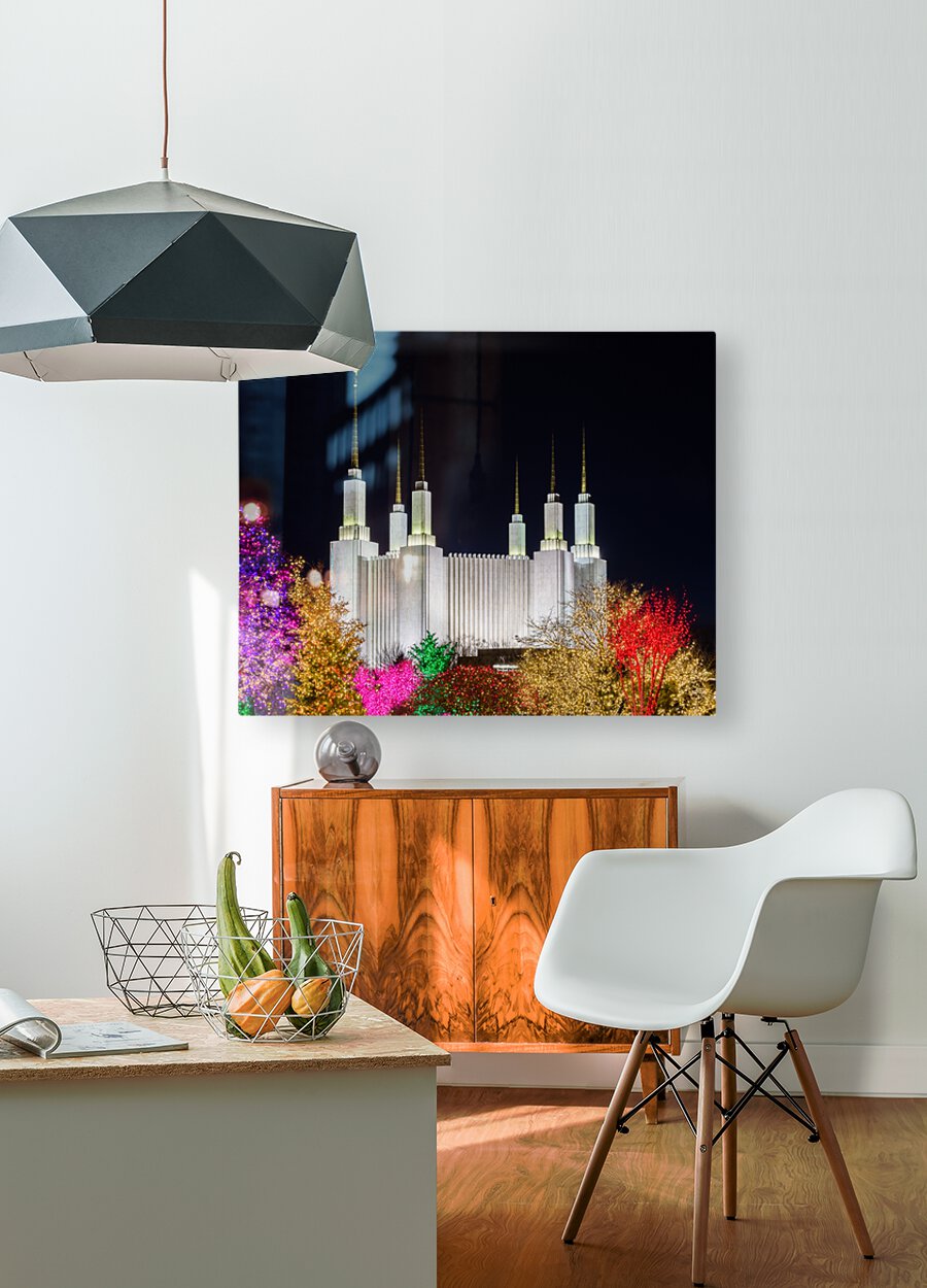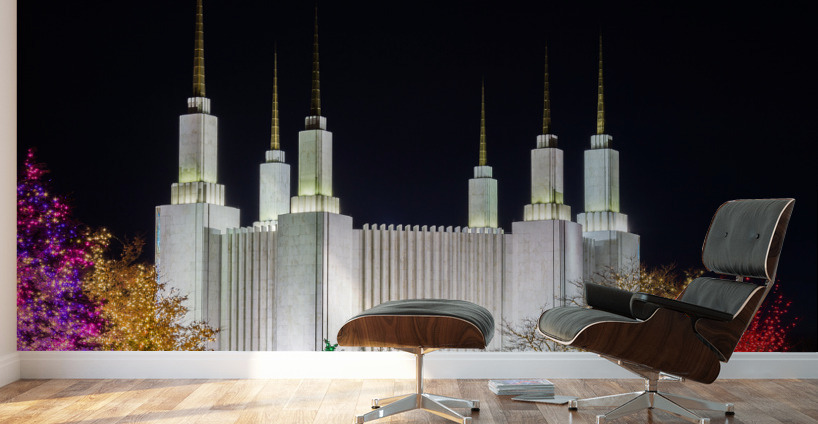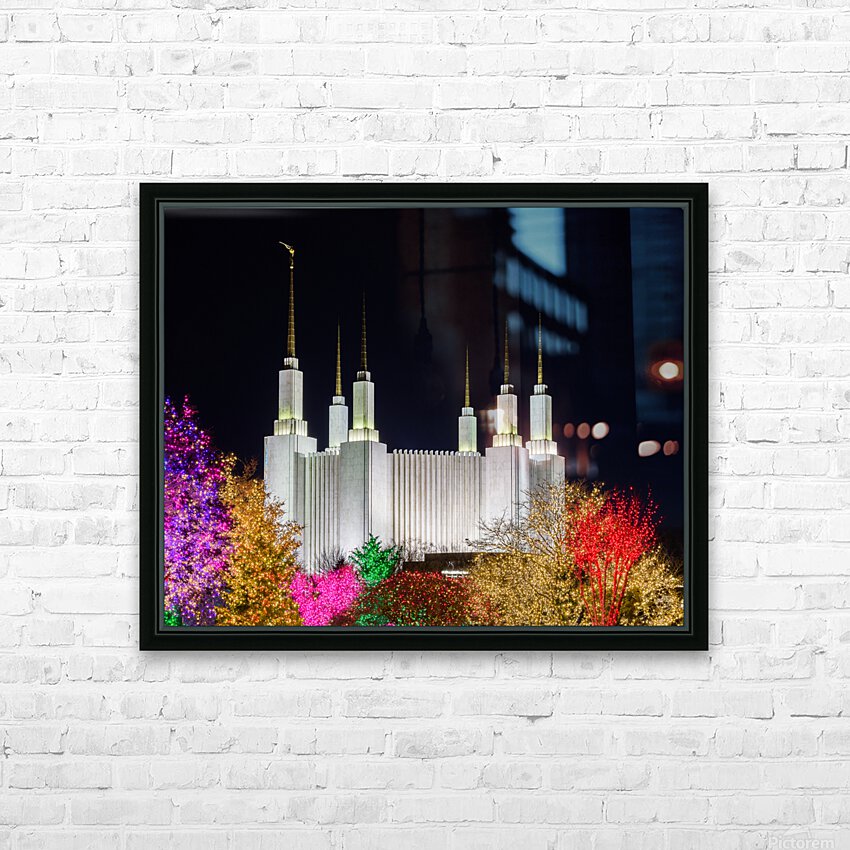 Get this artwork "Mormon temple in Washington DC with xmas lights" in a framed print.