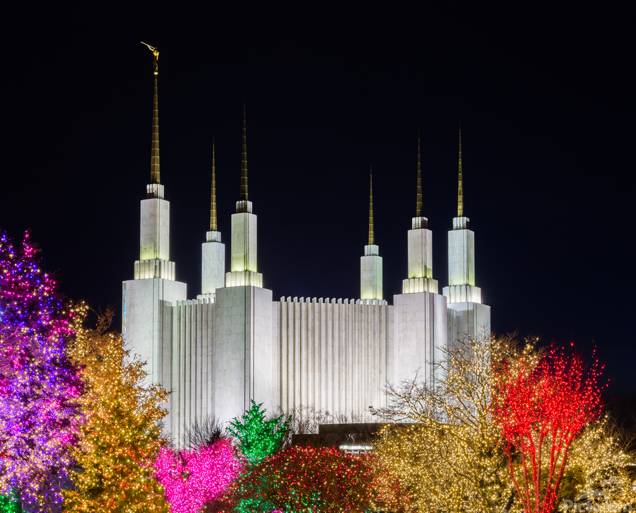 ABOUT THIS ARTWORK: MORMON TEMPLE IN WASHINGTON DC WITH XMAS LIGHTS