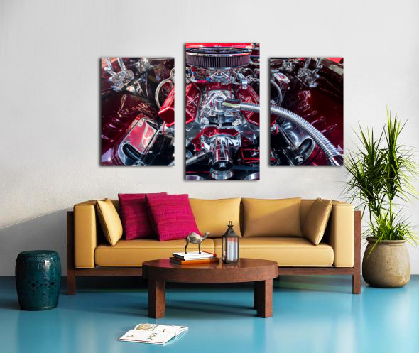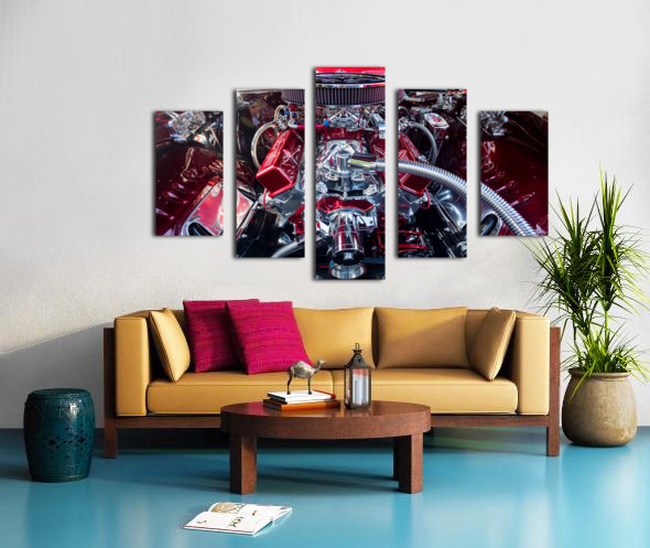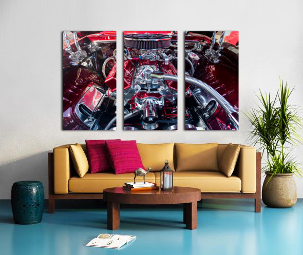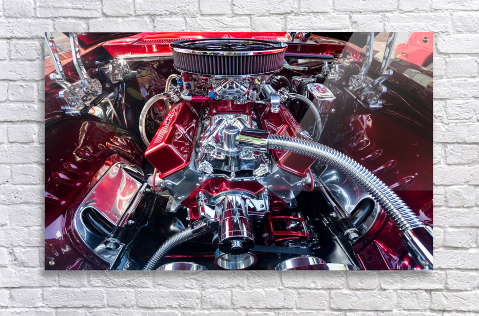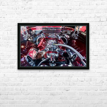 Get this artwork "Engine compartment of chromed Camaro" in a framed print.