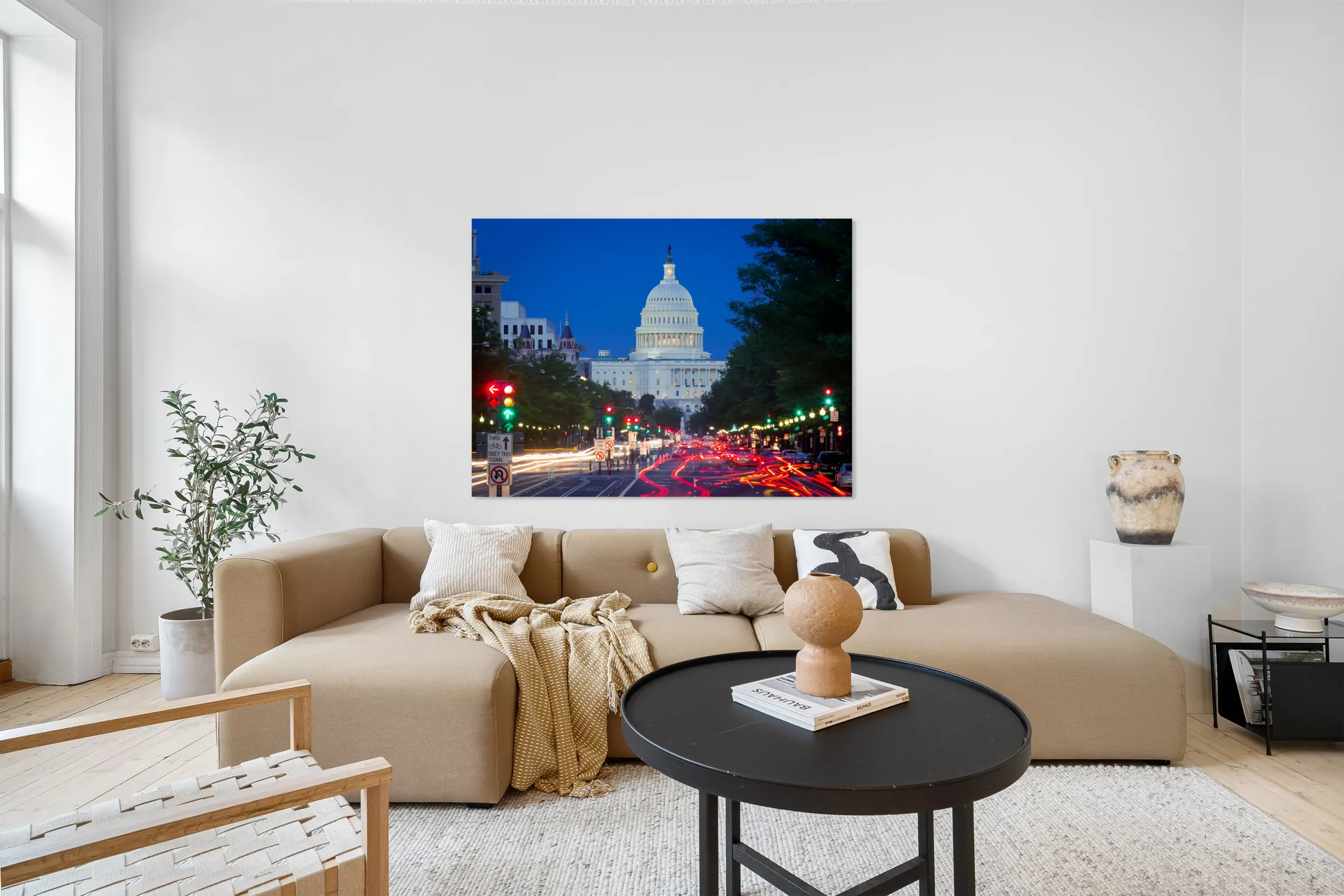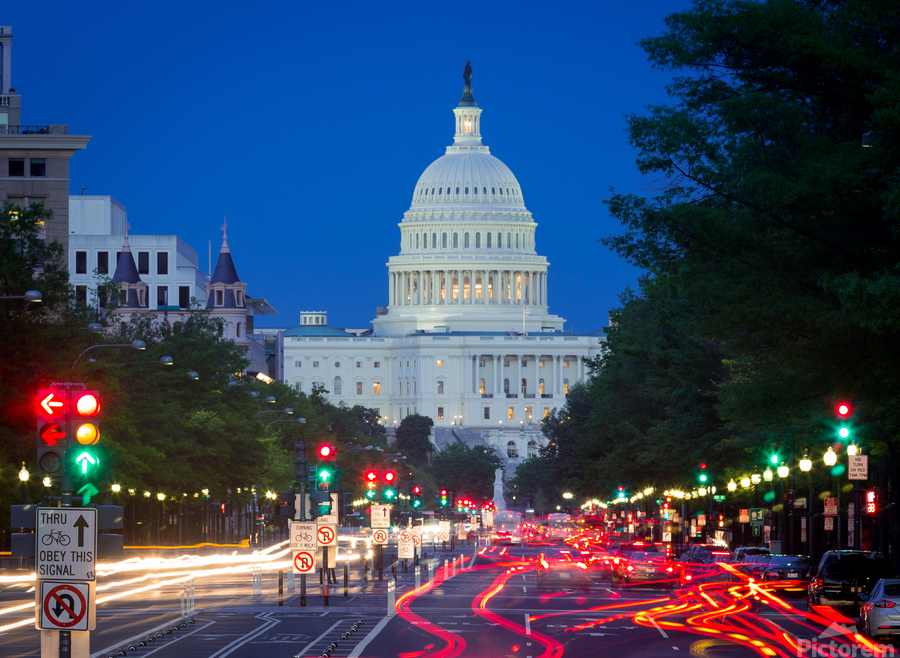 ABOUT THIS ARTWORK: VIEW DOWN PENNSYLVANIA AVENUE DC AT NIGHT