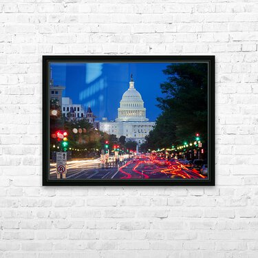 Get this artwork "View down Pennsylvania Avenue DC at night" in a framed print.