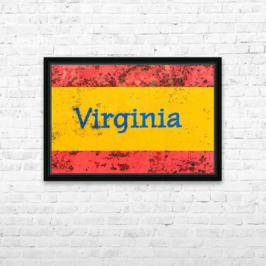 Macro photo of state of Virginia name on newstand Frame print