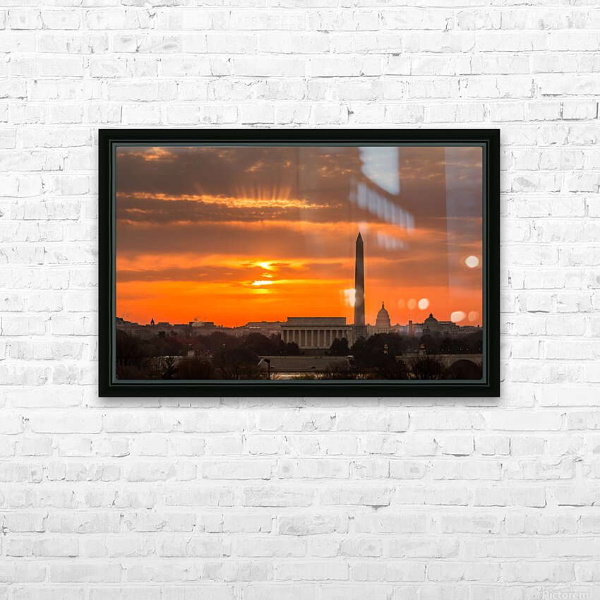 Fiery sunrise over monuments of Washington Picture Frame Printing