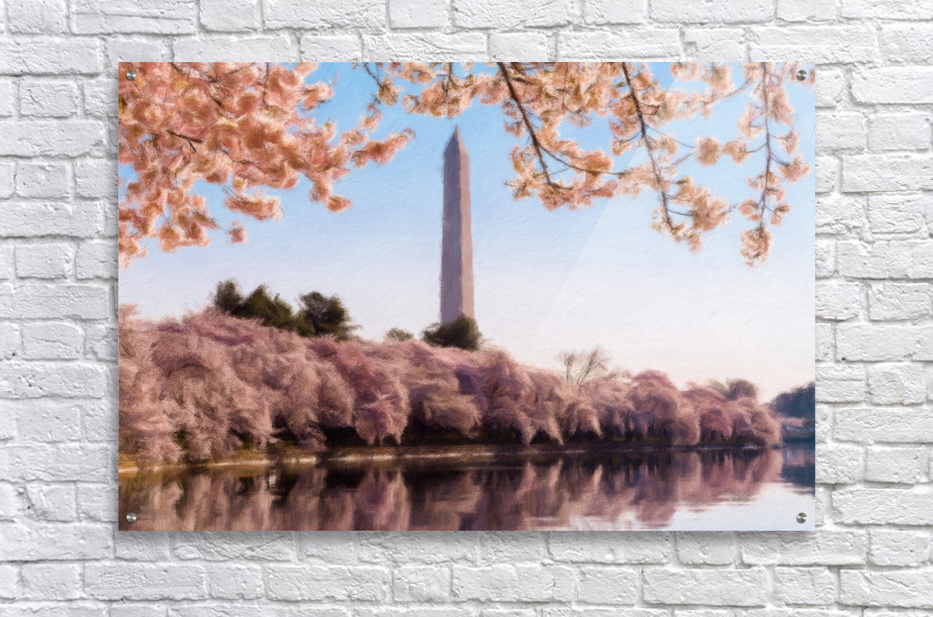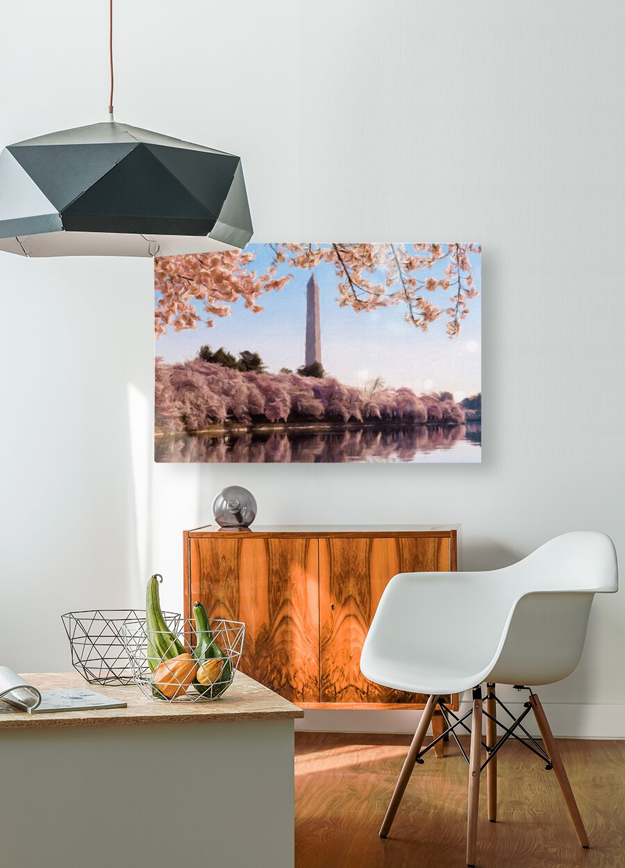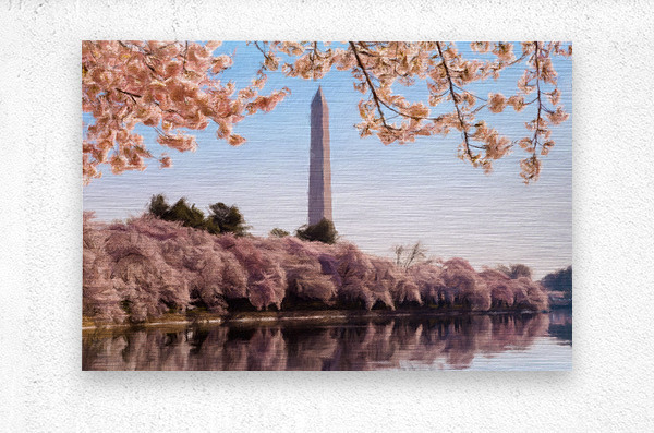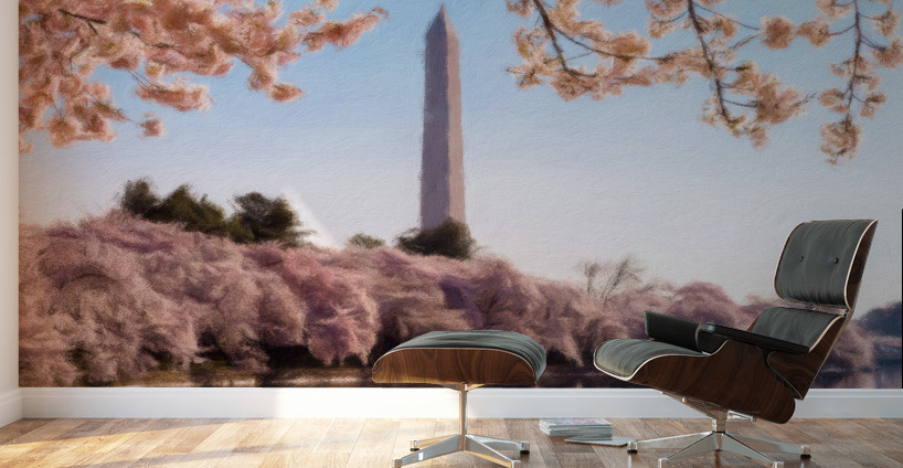 ABOUT THIS ARTWORK: DIGITAL ART OF THE WASHINGTON MONUMENT TOWERING ABOVE BLOSSOMS