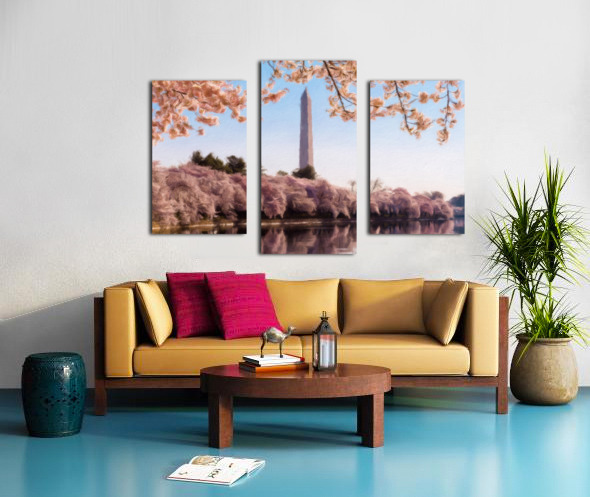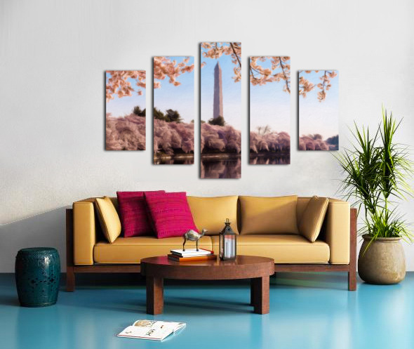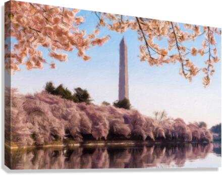 Digital art of the Washington Monument towering above blossoms Canvas print