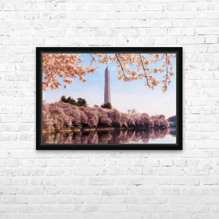 Digital art of the Washington Monument towering above blossoms Picture Frame Printing