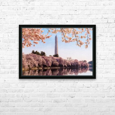Get this artwork "Digital art of the Washington Monument towering above blossoms" in a framed print.