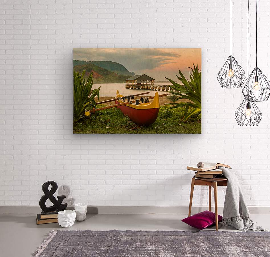 Get this artwork "Hawaiian canoe by Hanalei Pier" in a framed print.