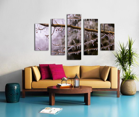 Get this artwork "Ice covered branches start to melt to icicles" in a framed print.