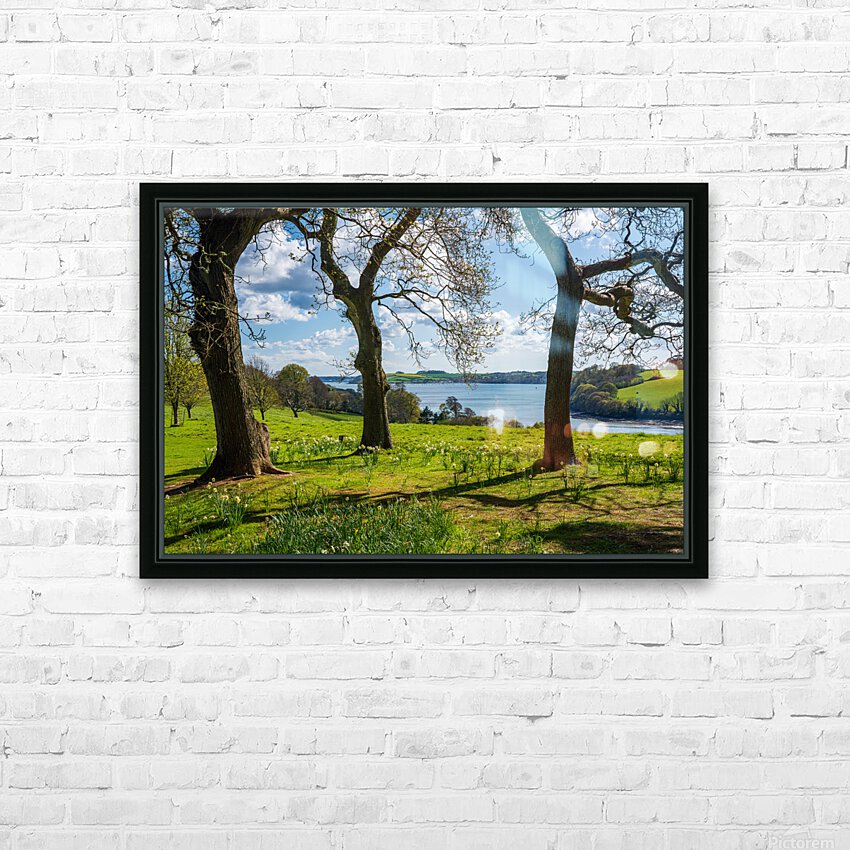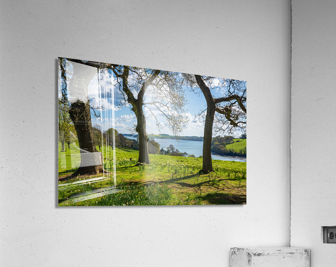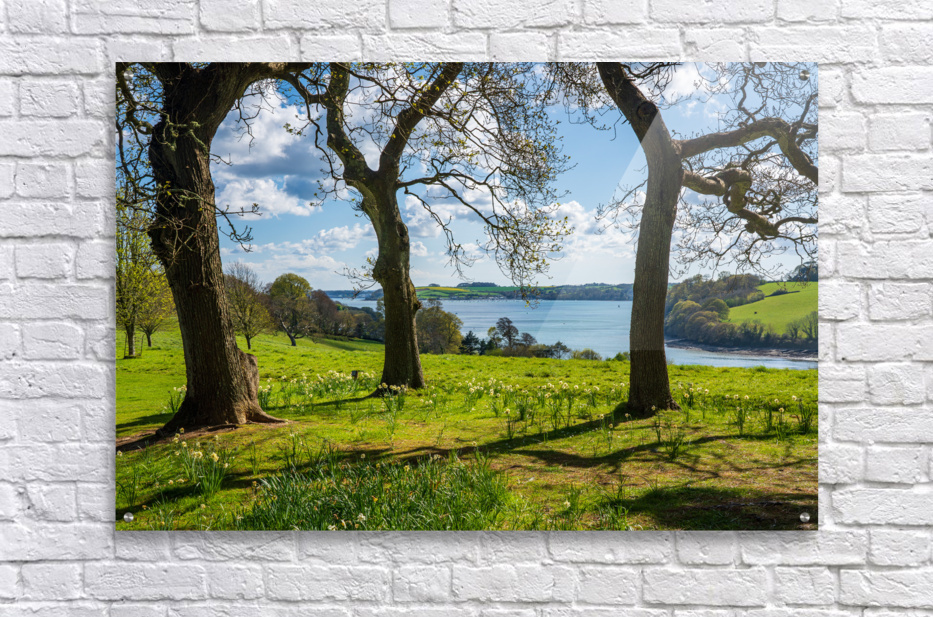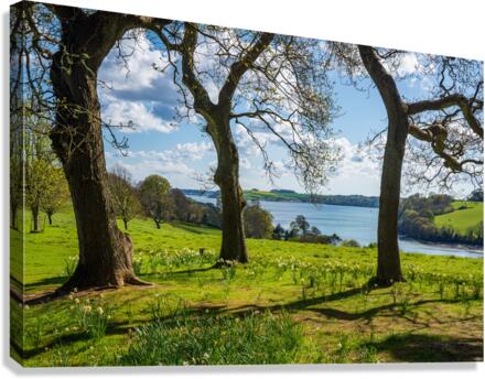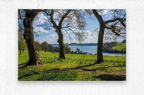 View across daffodils to River Fal near Truro Picture Frame Printing