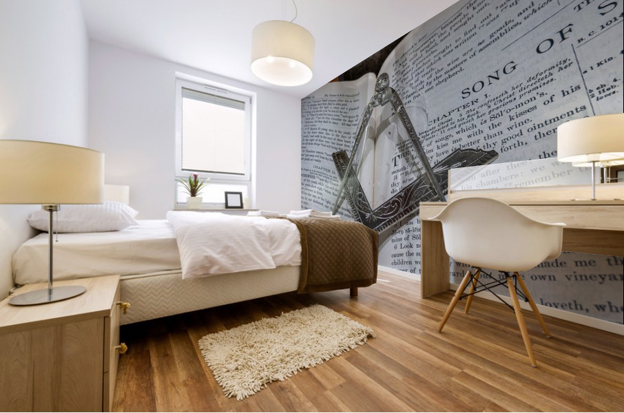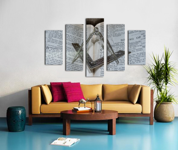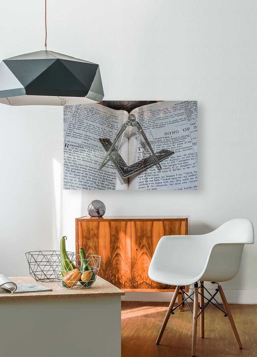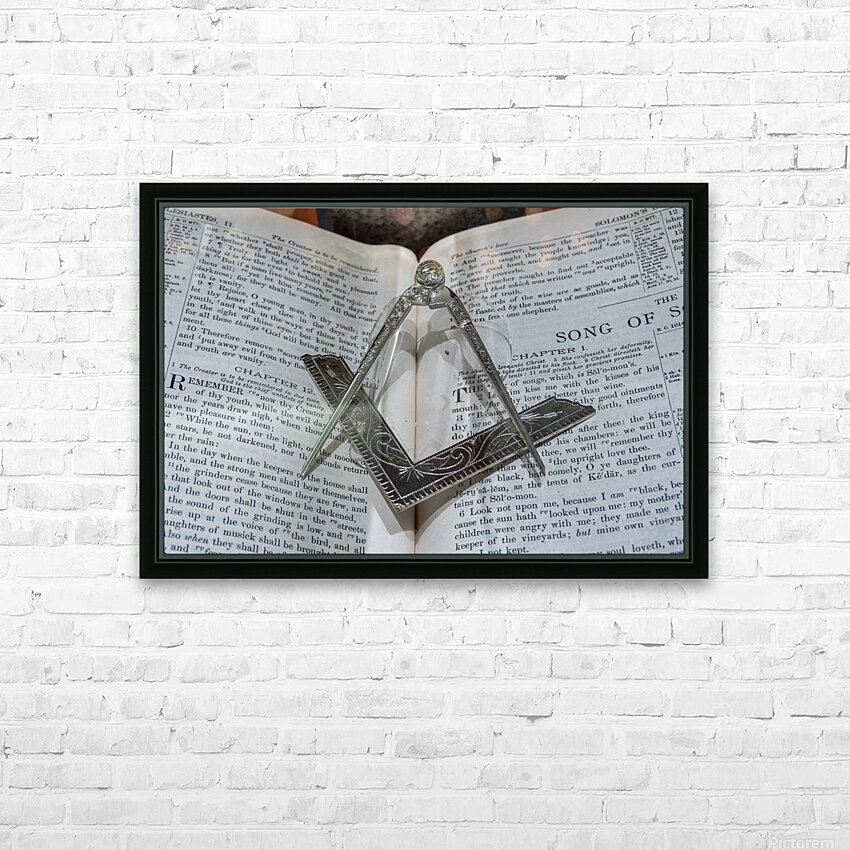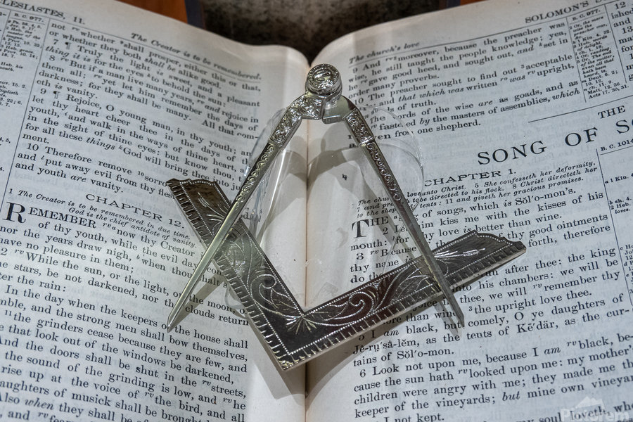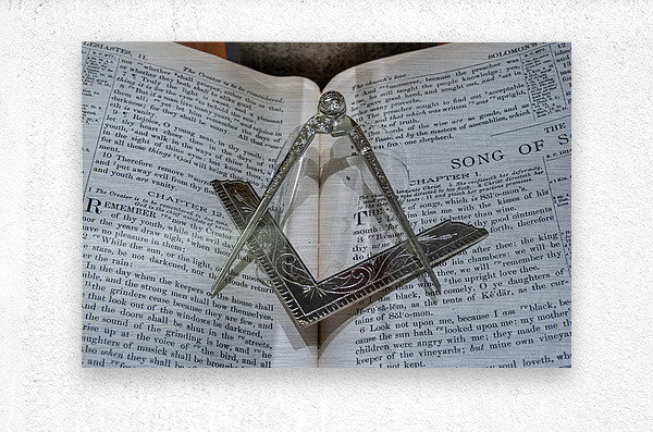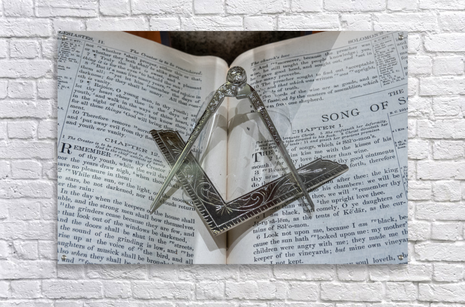 Silver square and compass on Bible for Freemasons Picture Frame Printing