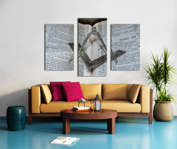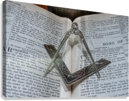 Silver square and compass on Bible for Freemasons Canvas print