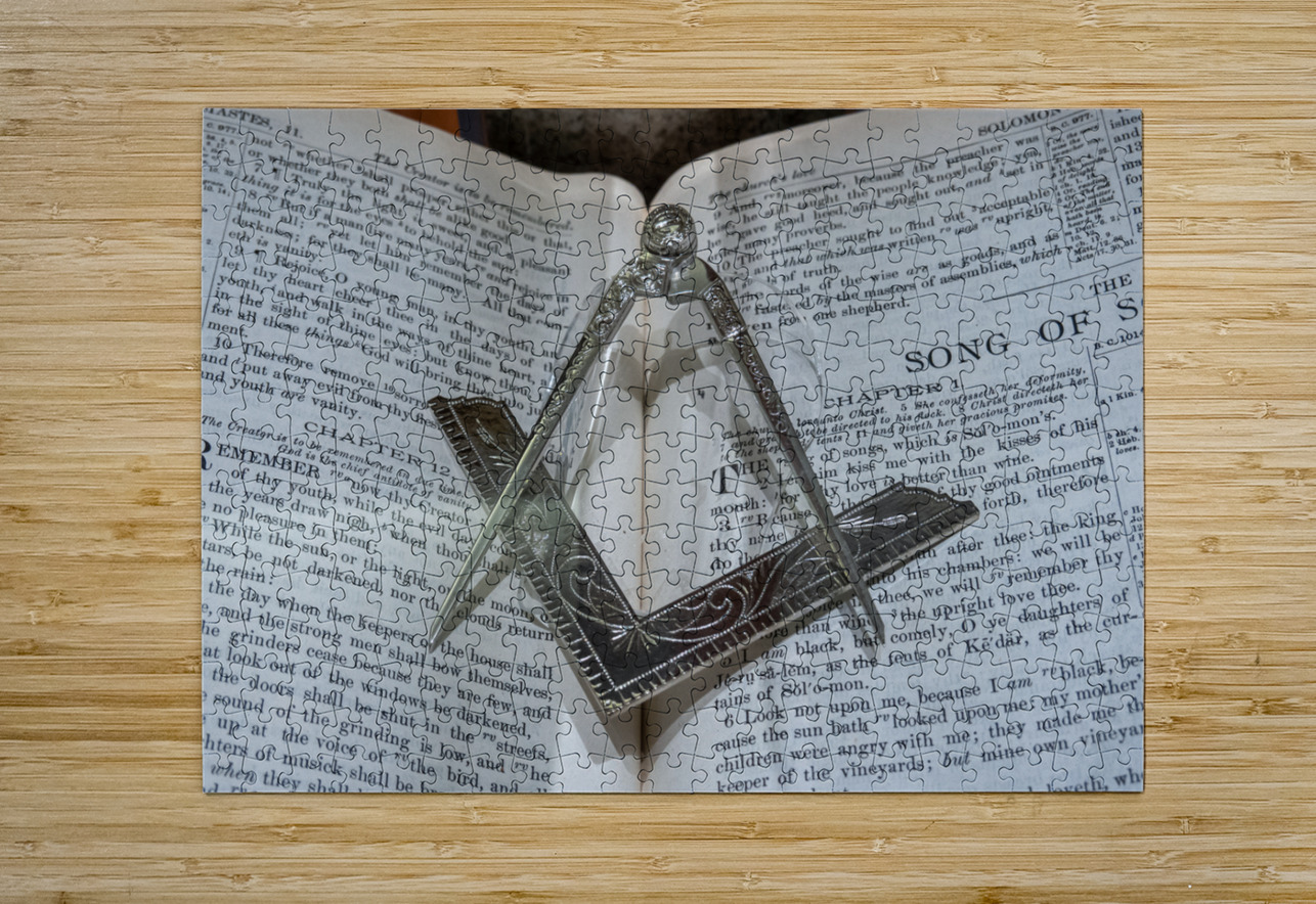 Silver square and compass on Bible for Freemasons Steve Heap Puzzle printing