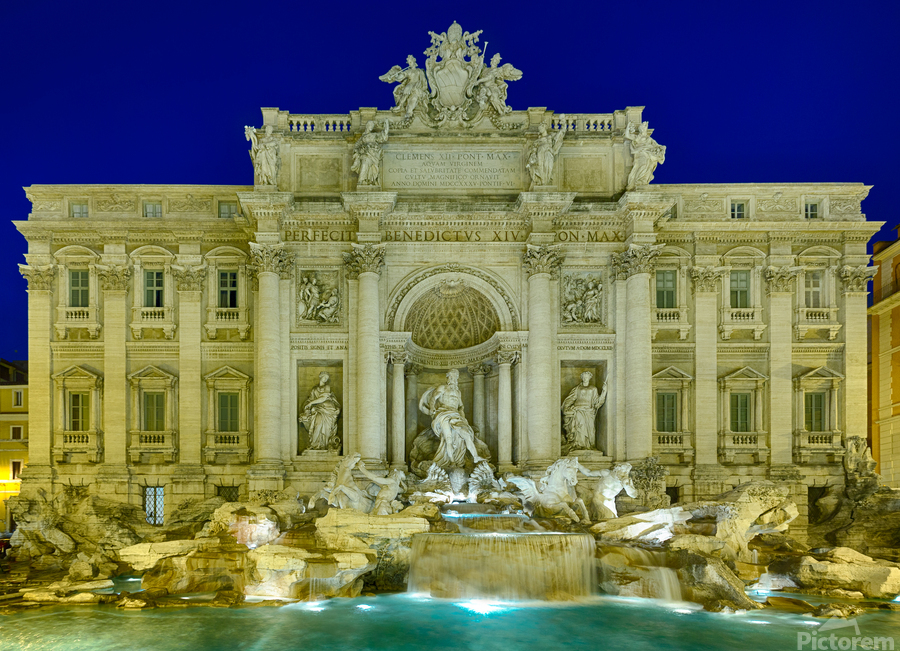 ABOUT THIS ARTWORK: TREVI FOUNTAIN DETAILS IN ROME ITALY