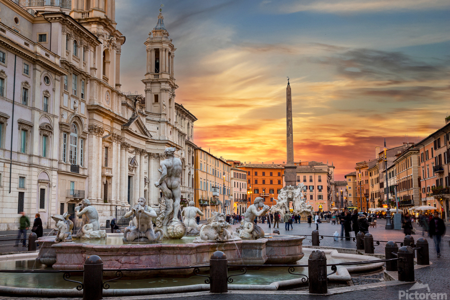 Dusk in famous Piazza Navona in Rome Picture Frame Printing