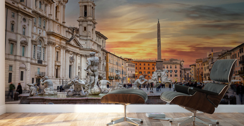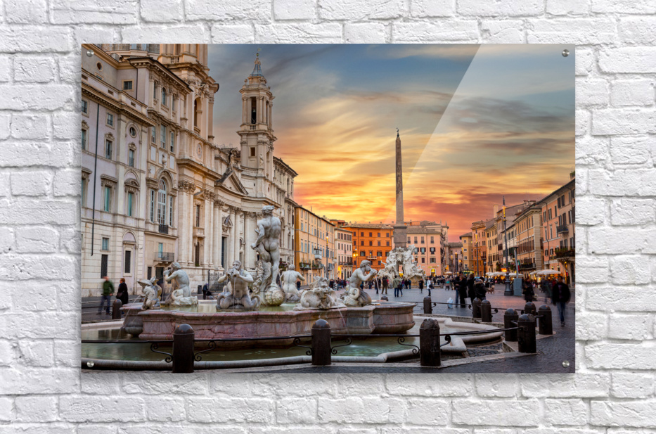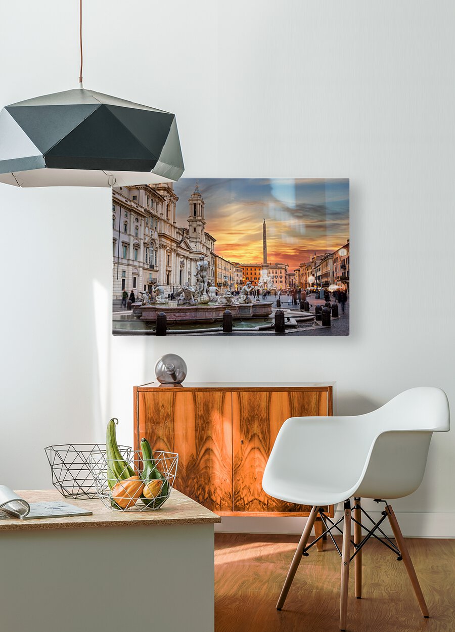Get this artwork "Dusk in famous Piazza Navona in Rome" in a framed print.