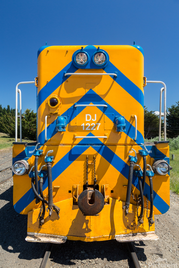 New Zealand diesel electric DJ class locomotive on Taieri Gorge railway in New Zealand. The engines were built by Mitsubishi Heavy Industries