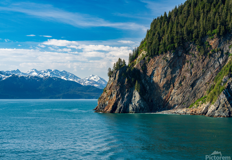 Dramatic rocky outcrops in Resurrection Bay near the port of Seward in Alaska