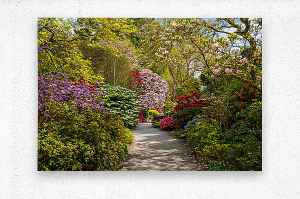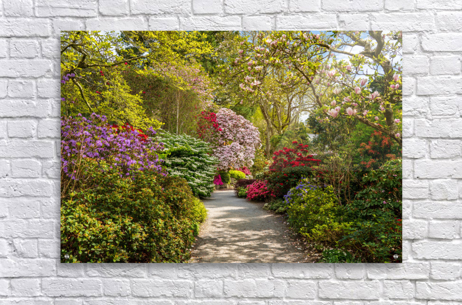 Path leads to Azaleas and Rhododendron trees in spring Picture Frame Printing