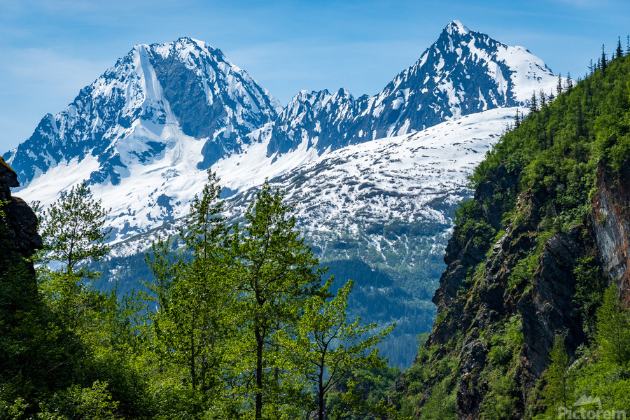 View of majestic mountains viewed through the gorge of Keystone Canyon near Valdez in Alaska