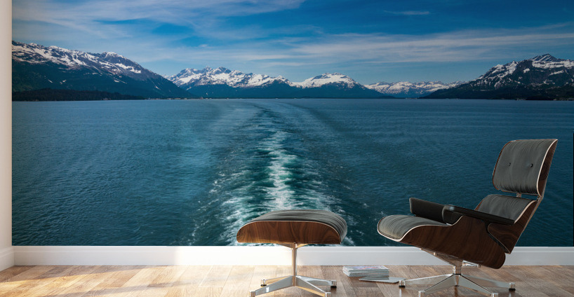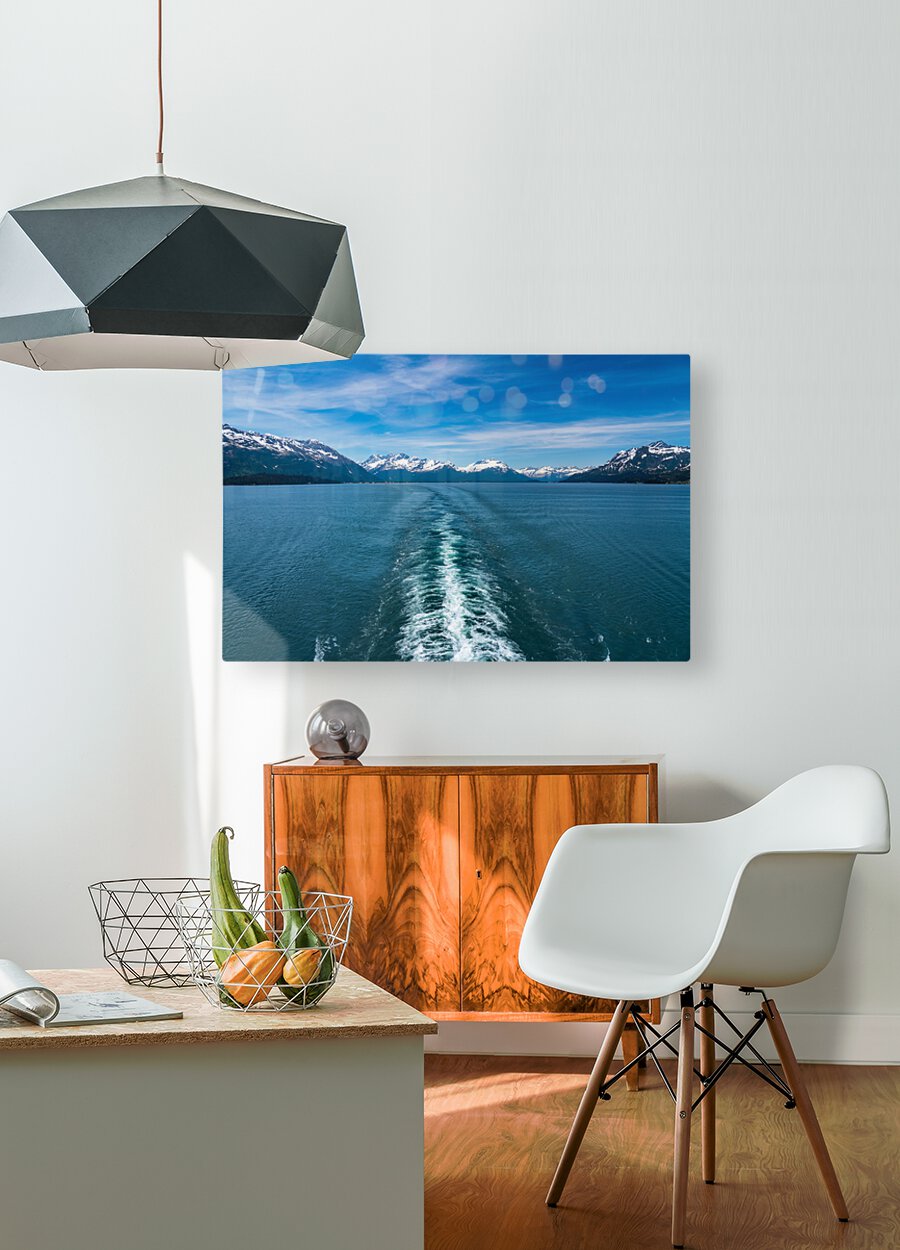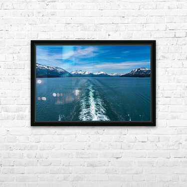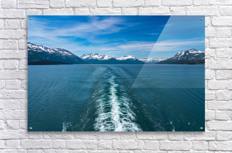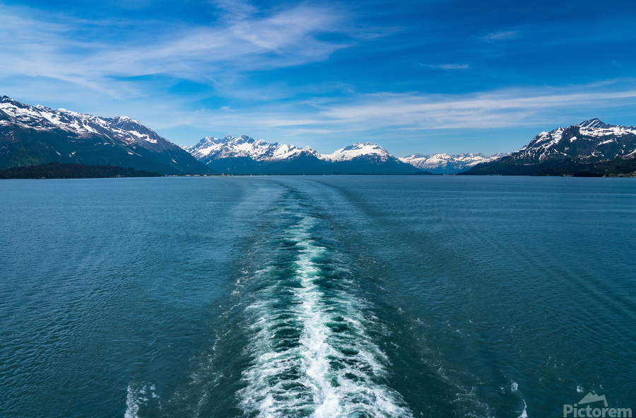 Get this artwork "Cruise boat wake leaving town of Valdez in Alaska" in a framed print.