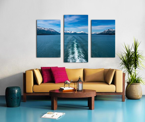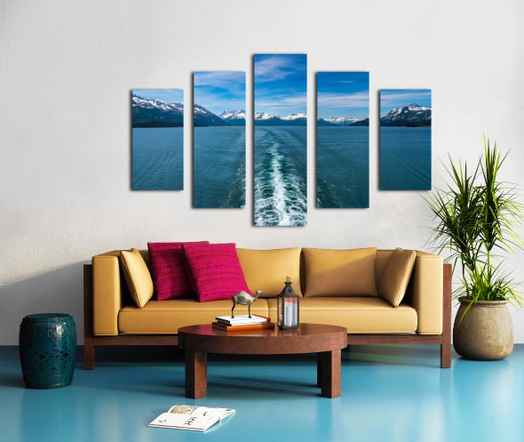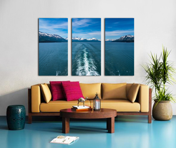 Cruise boat wake leaving town of Valdez in Alaska Canvas print