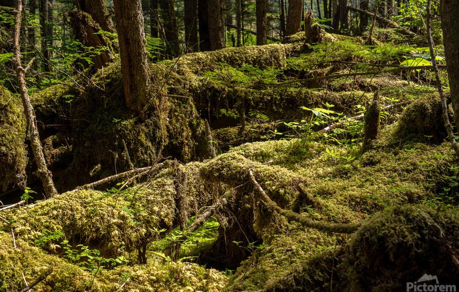 Get this artwork "Dense vegetation in temperate rain forest in Alaska" in a framed print.