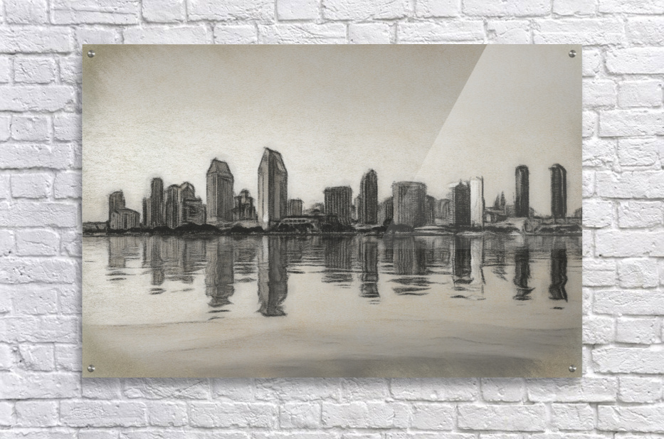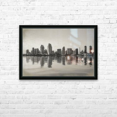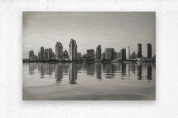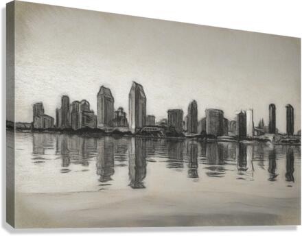 Moody Charcoal drawing of San Diego created digitally from an original photograph