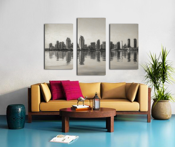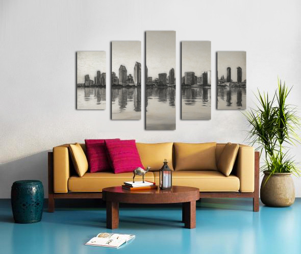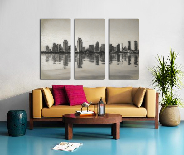 ABOUT THIS ARTWORK: CHARCOAL SAN DIEGO SKYLINE AT SUNSET FROM CORONADO
