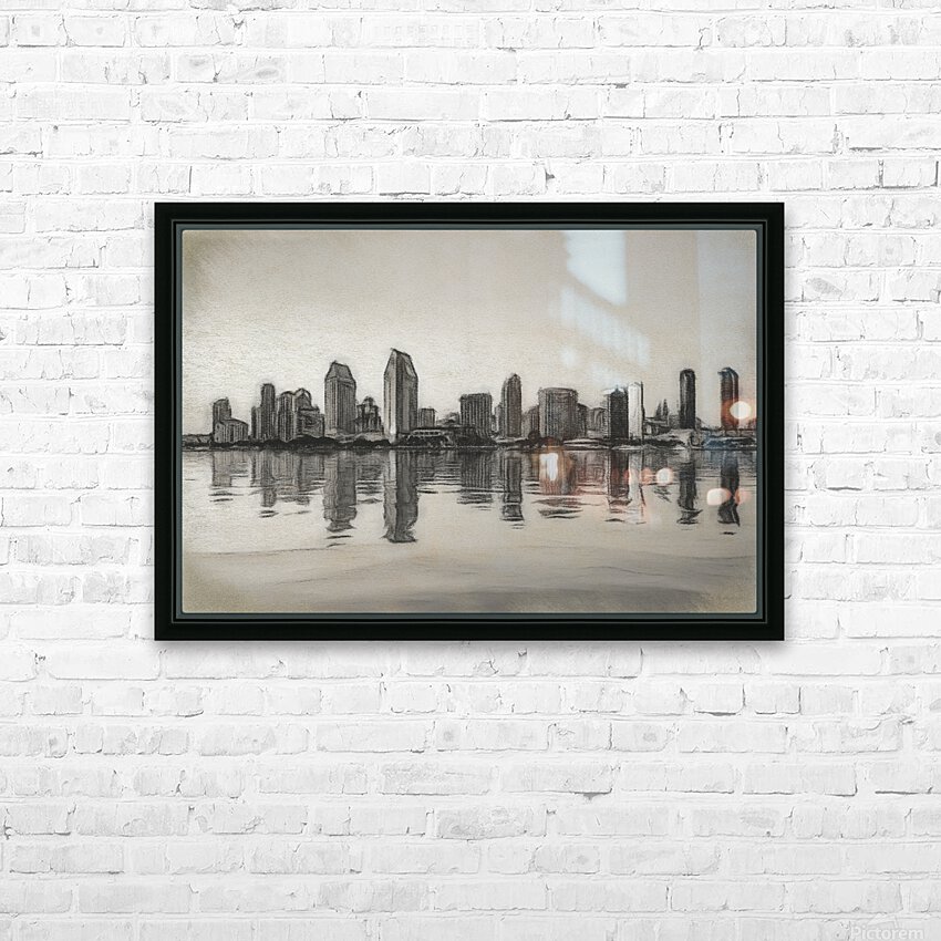 Charcoal San Diego Skyline at sunset from Coronado Frame print