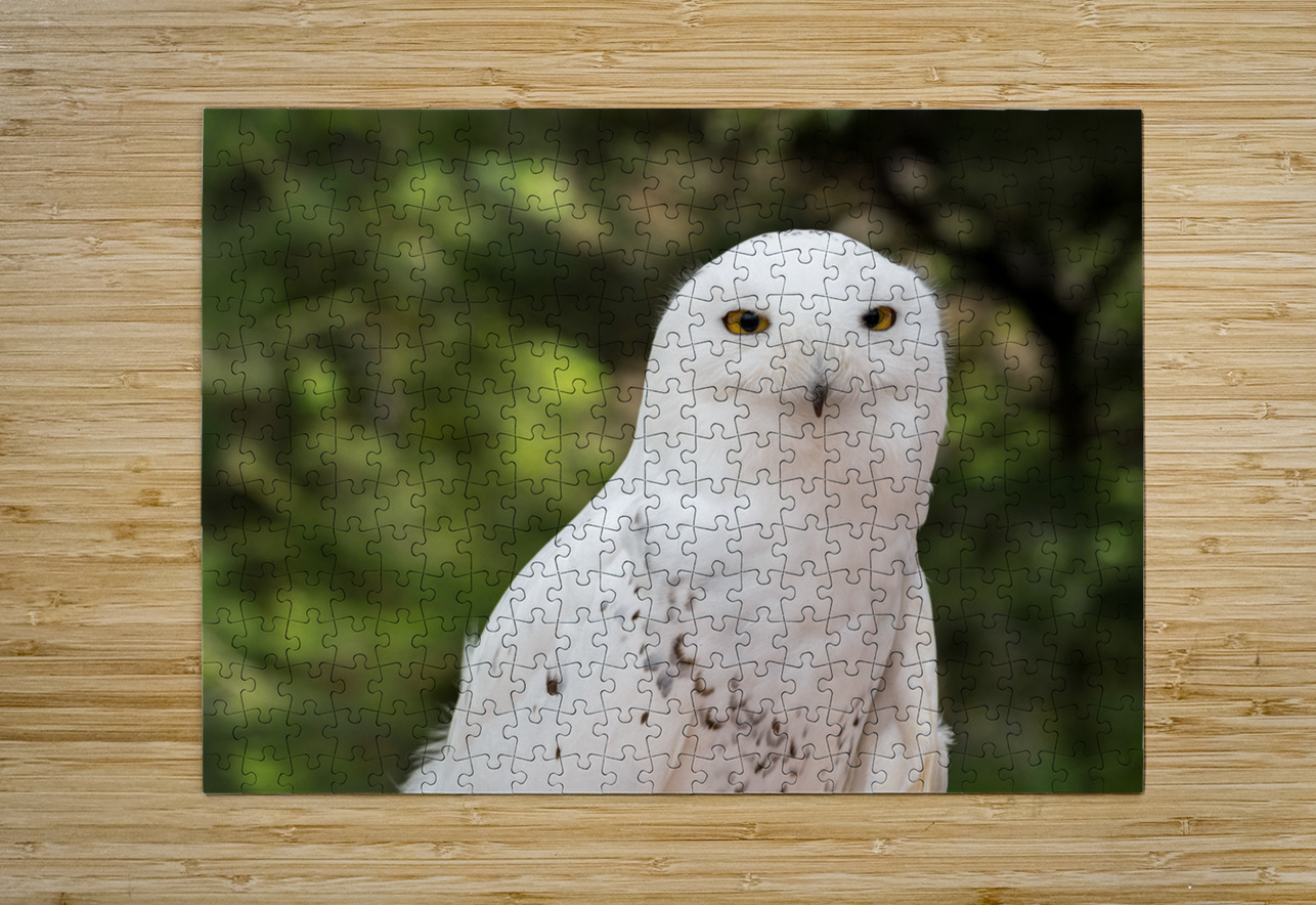 Close up of Snowy Owl against green rainforest in summer Steve Heap Puzzle printing