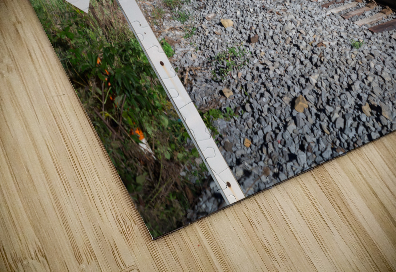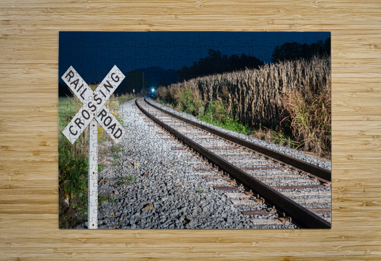 Oncoming train with railroad crossing sign Steve Heap Puzzle printing