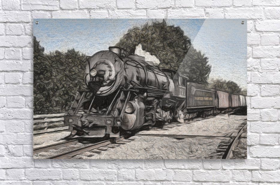 Get this artwork "Charcoal WMSR Steam train in Frostburg" in a framed print.
