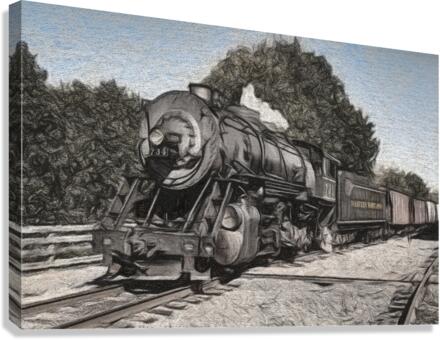 Charcoal sketch of Western Maryland Railroad Baldwin steam train in the fall of 2011. This scenic railroad offers excursions pulled by a 1916 Baldwin locomotive from Cumberland to Frostburg.