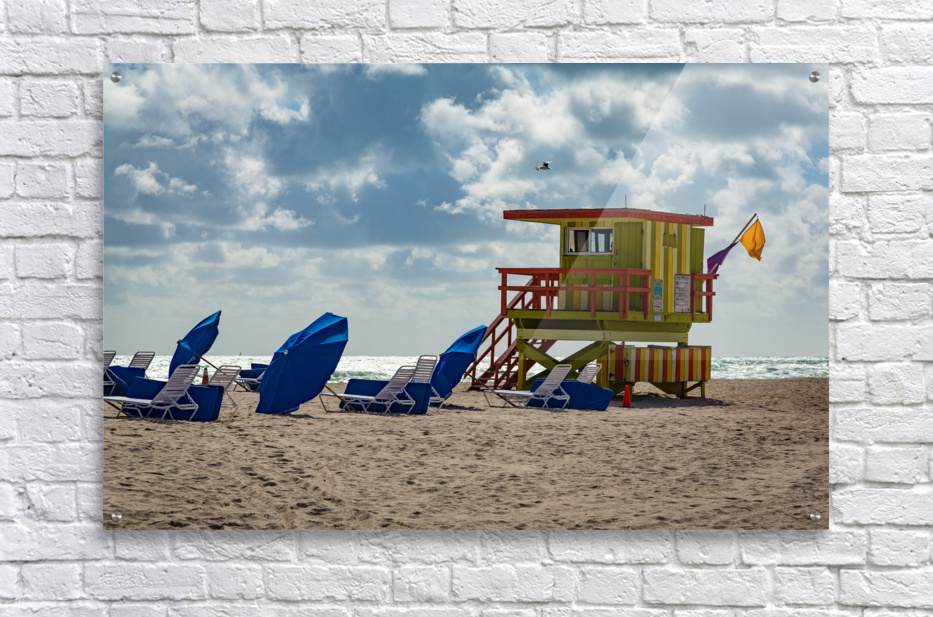 ABOUT THIS ARTWORK: YELLOW AND GREEN LIFEGUARD STATION ON MIAMI BEACH